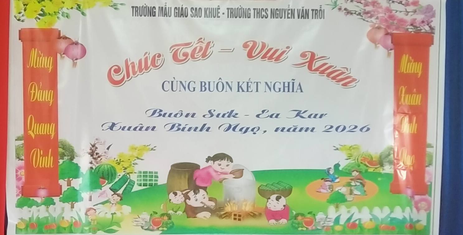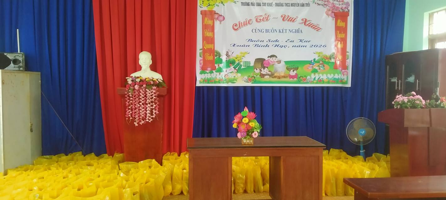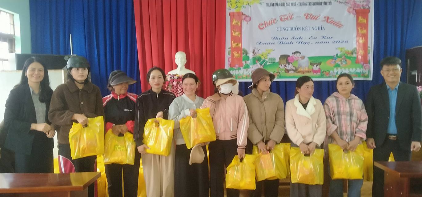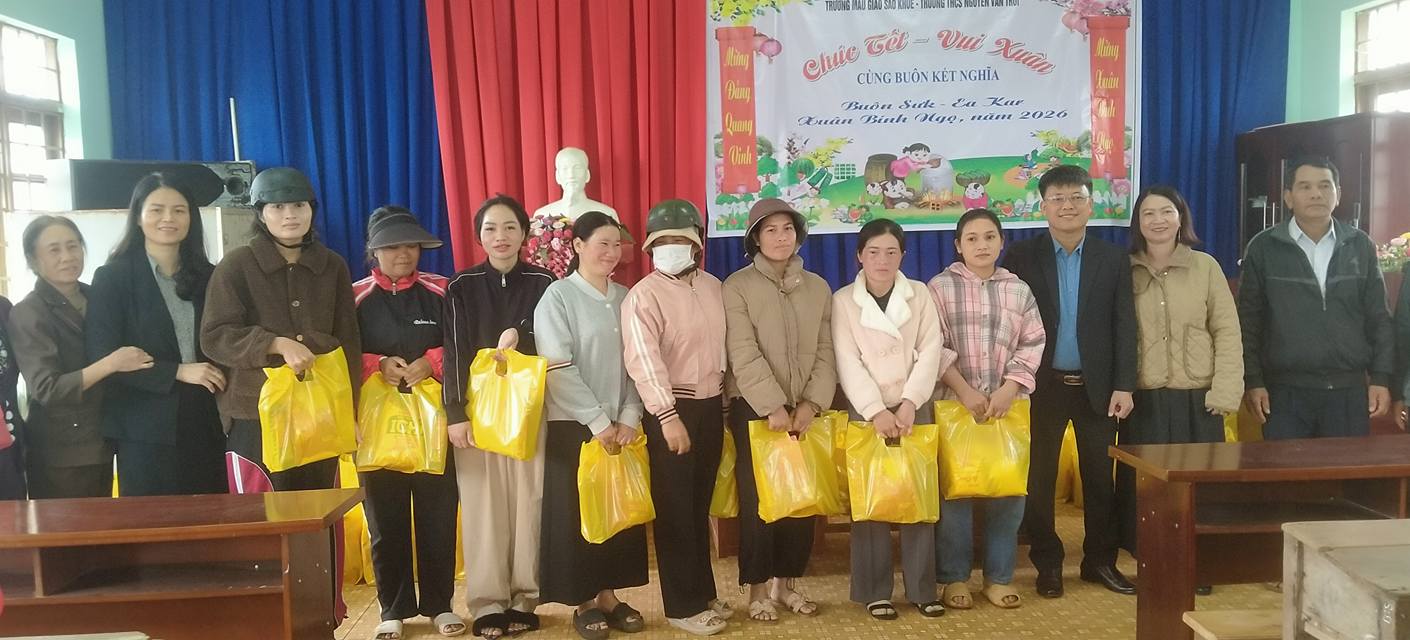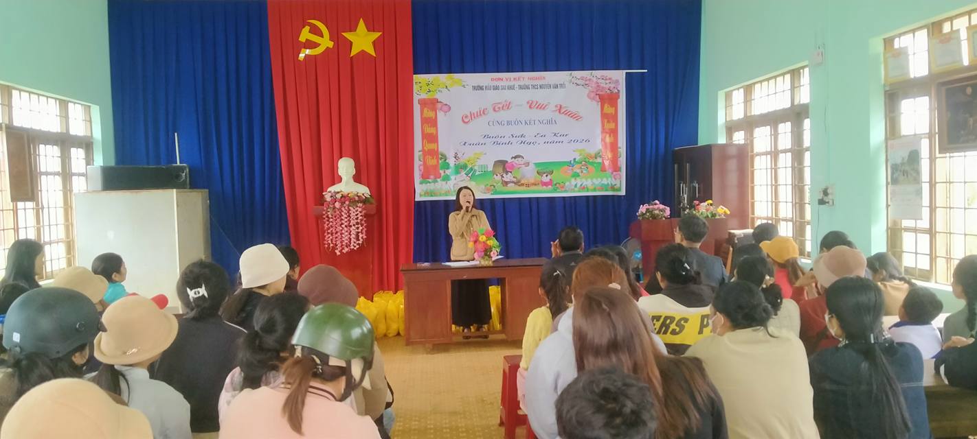 Sáng ngày 15/2/2026. Đại diện BGH nhà trường, Trường THCS Nguyễn Văn Trỗi và Trường Mẫu giáo Sao Khuê – Xã Ea Kar – Tỉnh Đắk Lắk tổ chức tặng quà vui tết, mừng xuân Bính Ngọ năm 2026 với buôn kết nghĩa Buôn Sưk, xã Ea Kar.