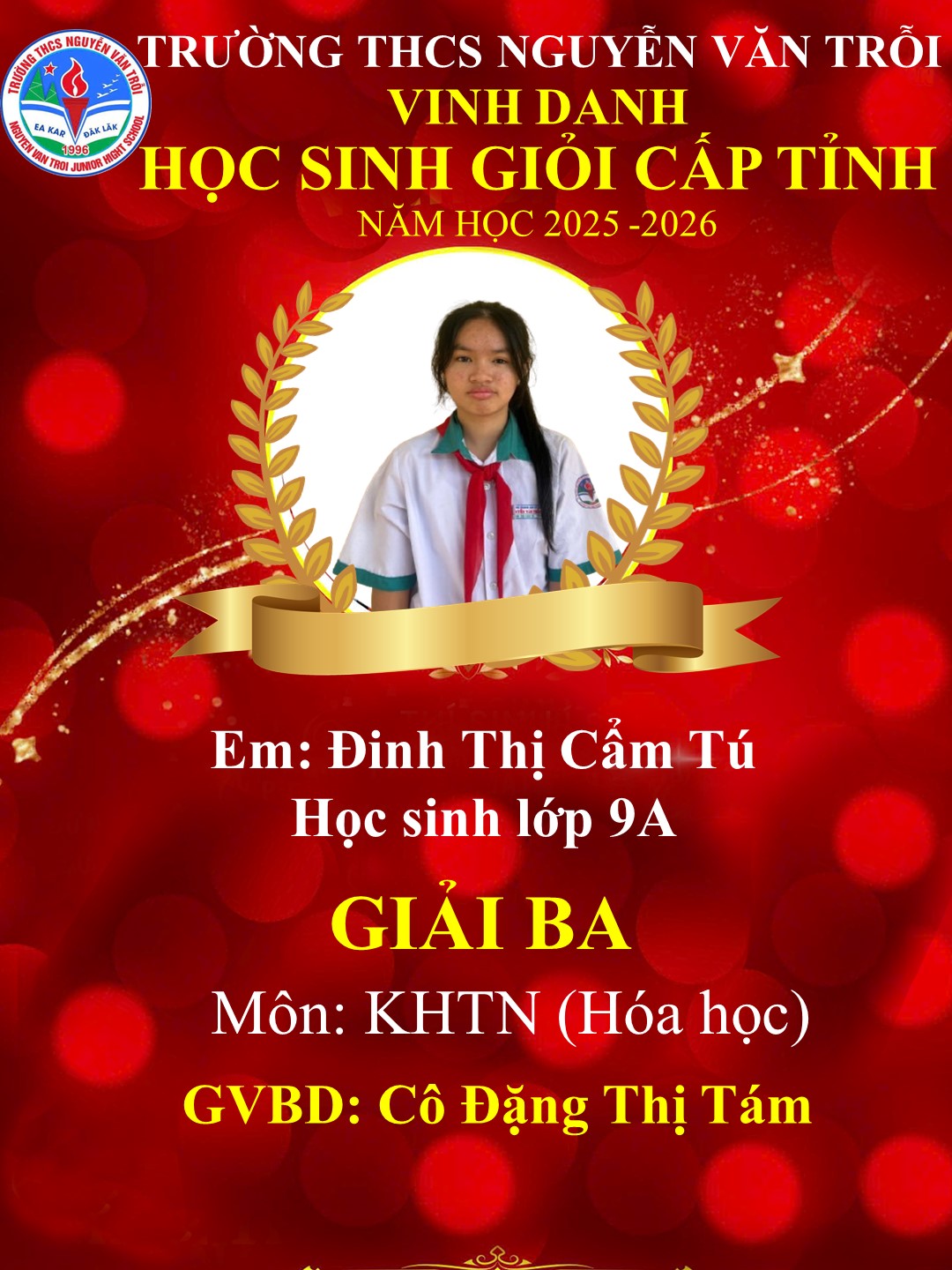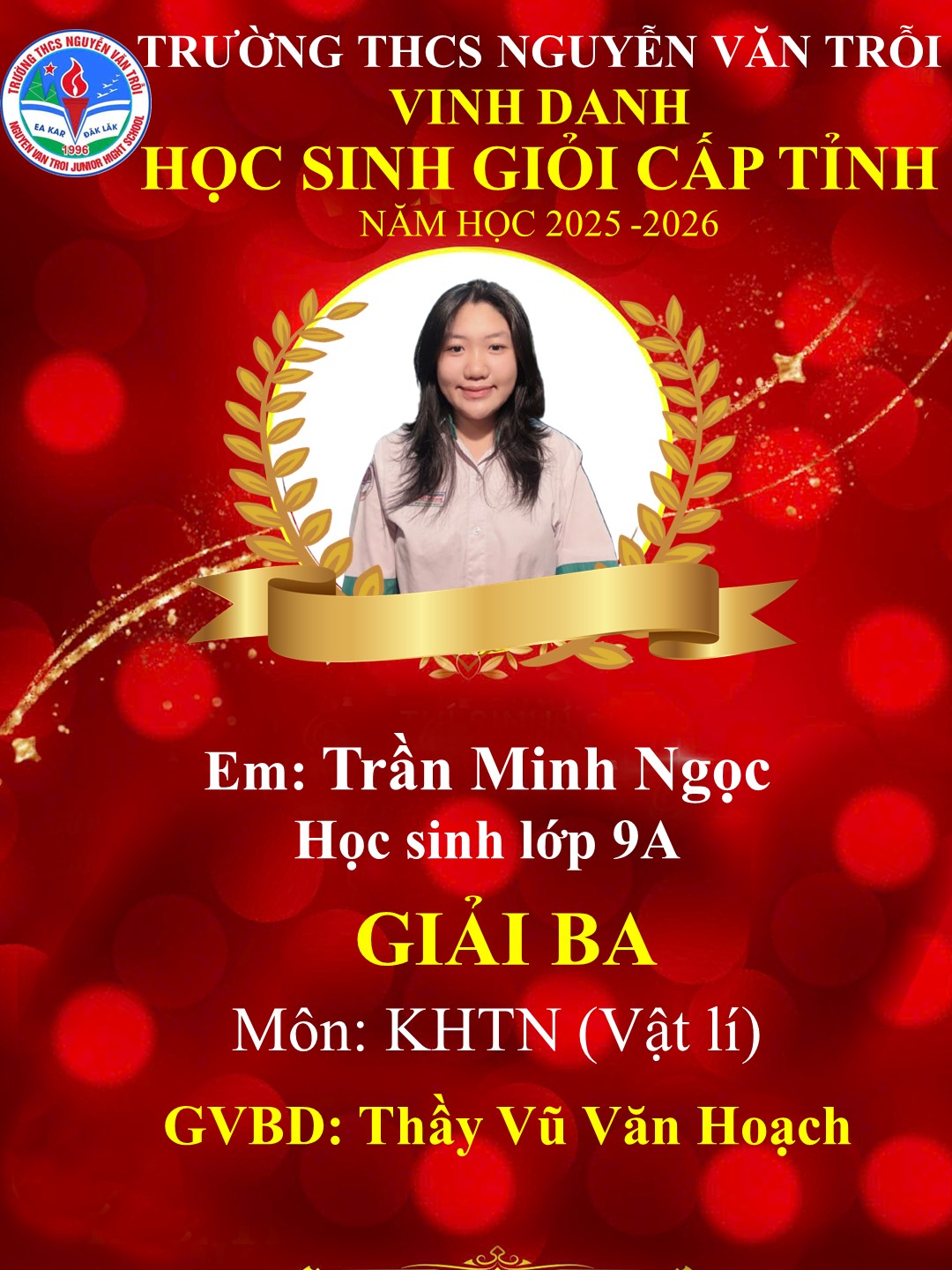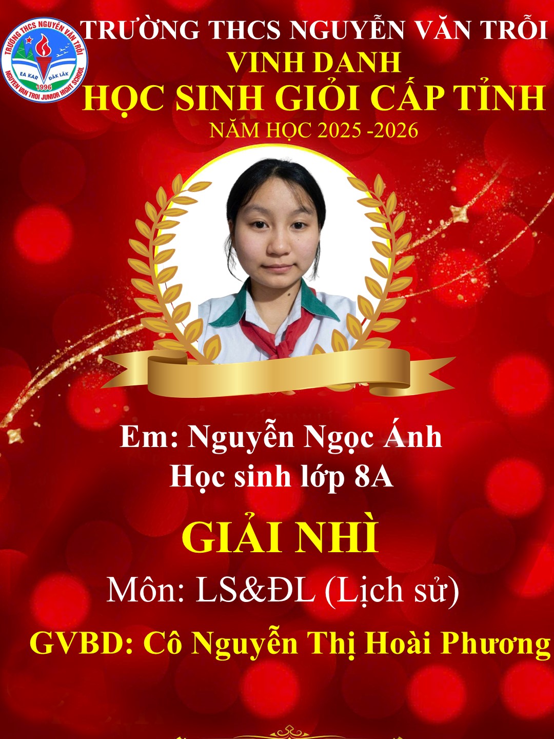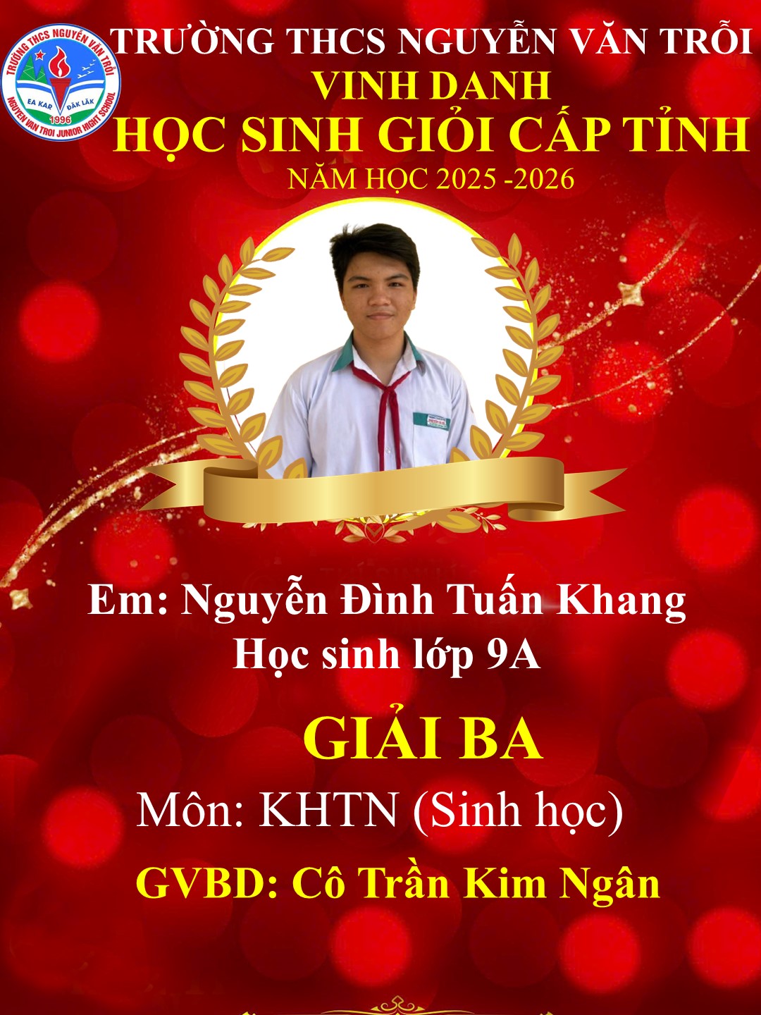 KẾT QUẢ HỌC SINH GIỎI CẤP TỈNH NĂM HỌC 2025-2026