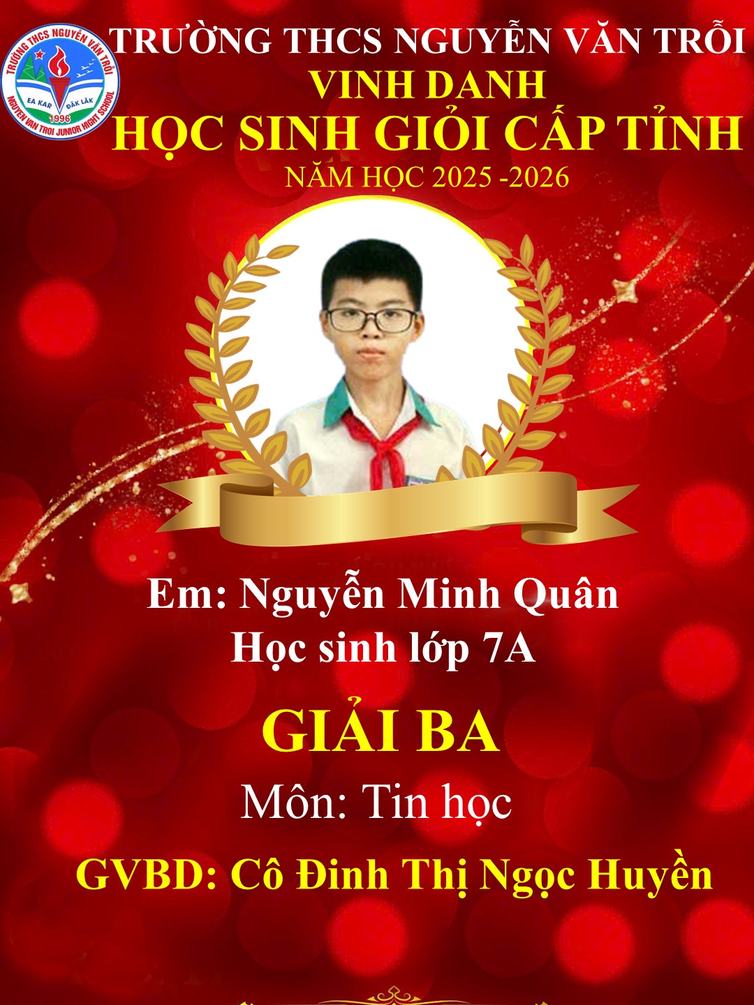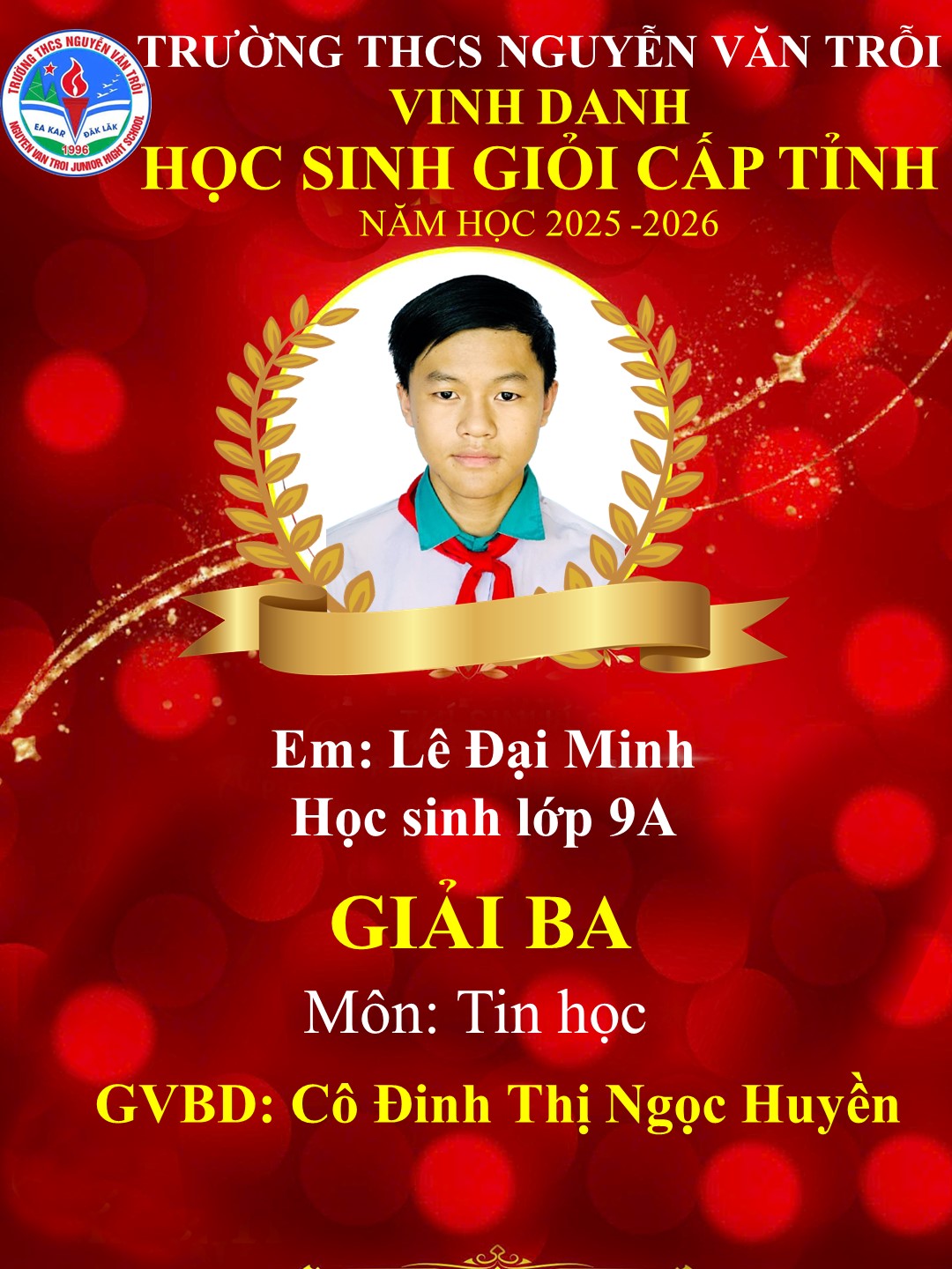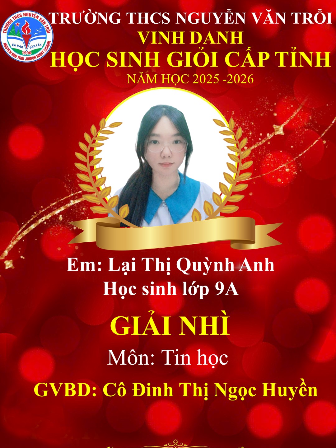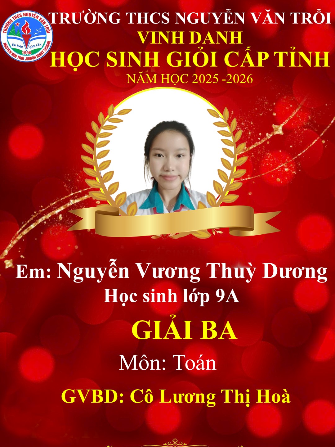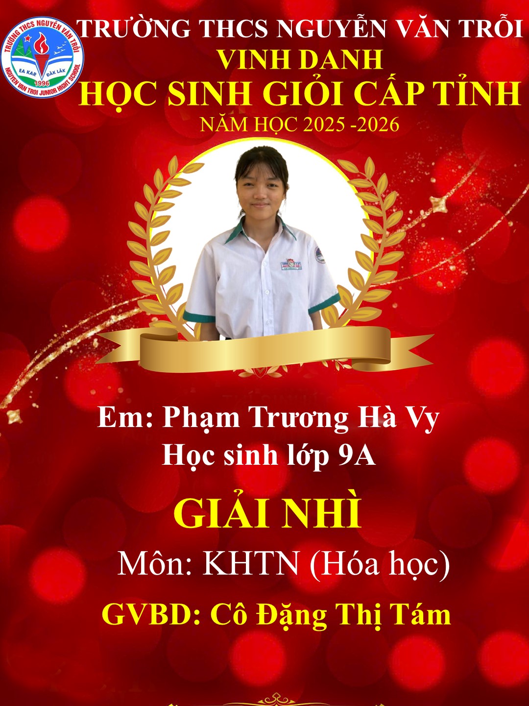 KẾT QUẢ HỌC SINH GIỎI CẤP TỈNH NĂM HỌC 2025-2026