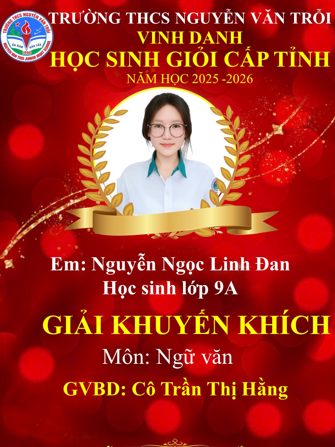 01 giải Khuyến khích môn Ngữ văn.