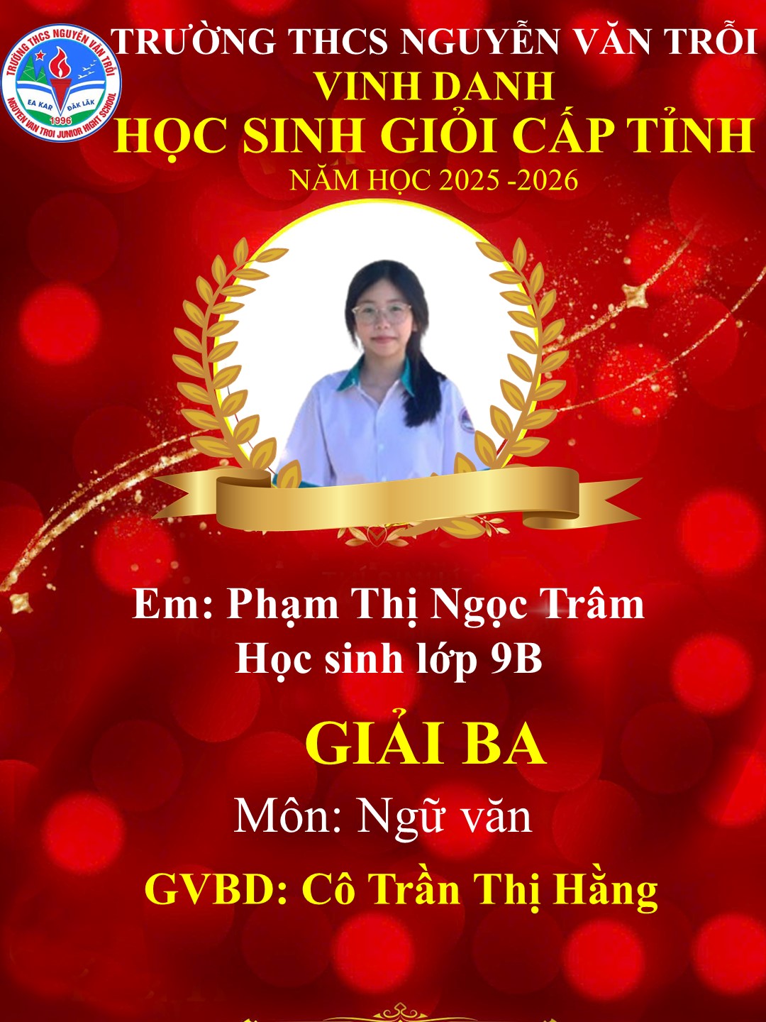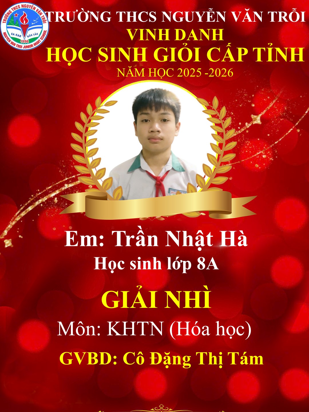 Nối tiếp truyền thống nhà trường trong những năm qua, năm học 2025-2026, thầy trò trường THCS Nguyễn Văn Trỗi xã Ea Kar đã đạt được những thành tích ấn tượng trong kỳ thi chọn học sinh giỏi các môn văn hoá cấp tỉnh. Cụ thể như sau: 13/13 em đạt giải; tỷ lệ 100% cụ thể: